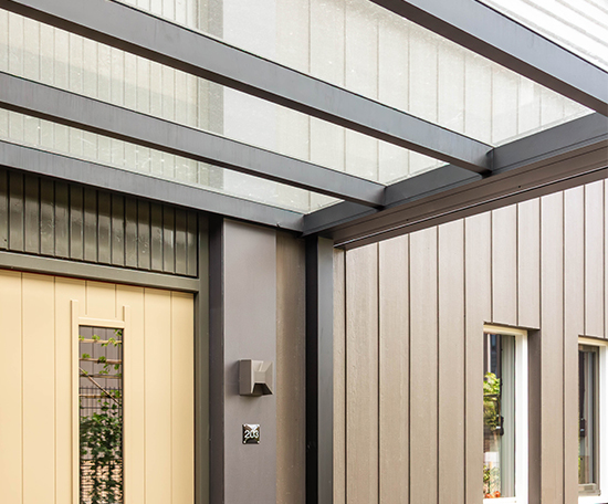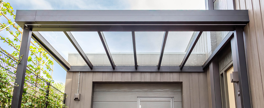 - Overkapping met glazen dak: recht