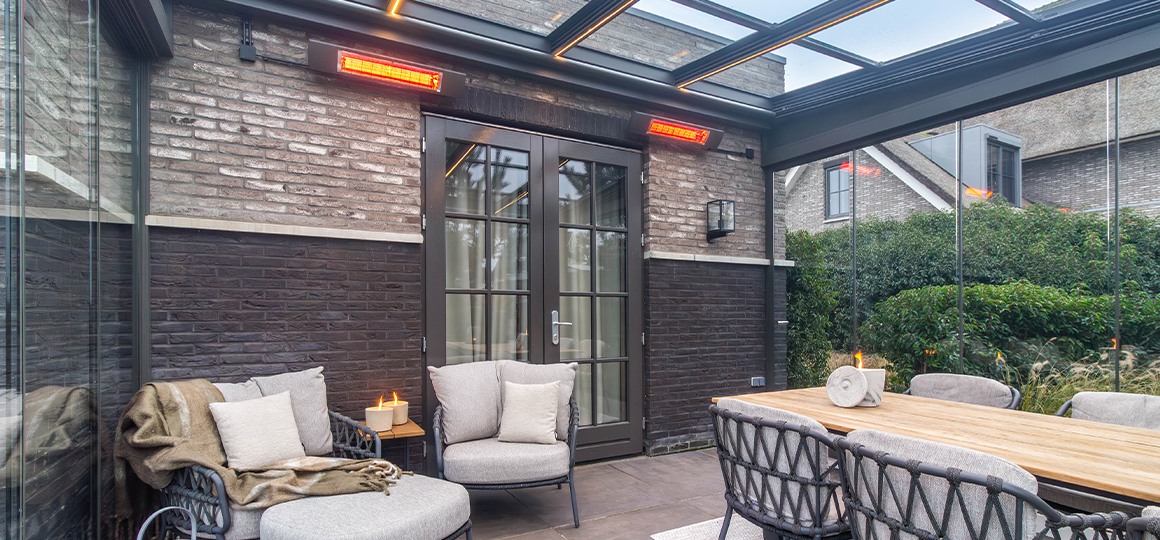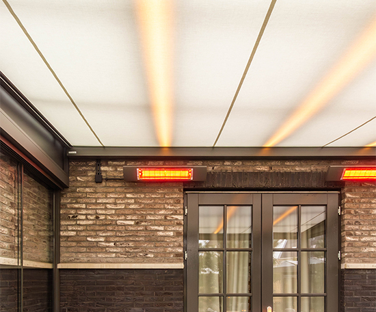 Verwarmingselementen zijn een waardevolle toevoeging voor elke buitenruimte om ook op de frisse momenten in je overkapping of op je terras te vertoeven. Naast dat het de nodige warmte afgeeft, heeft de heater ook een warme uitstraling door de infraroodstraling.