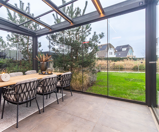 Door de uitbreiding van wanden is je overkapping bestand tegen alle weersomstandigheden en creëer je een tuinkamer om 4 seizoenen in te genieten. Schuif de wanden open op zonnige dagen en laat de frisse lucht binnenstromen, of sluit ze op koudere dagen voor een knusse en behaaglijke buitenruimte.