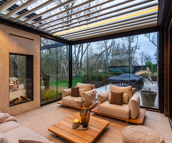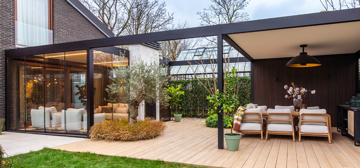 Door de uitbreiding van wanden is je overkapping bestand tegen alle weersomstandigheden en creëer je een tuinkamer om 4 seizoenen in te genieten. Schuif de wanden open op zonnige dagen en laat de frisse lucht binnenstromen, of sluit ze op koudere dagen voor een knusse en behaaglijke buitenruimte.