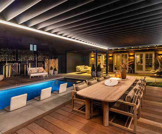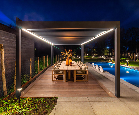 Een overkapping met lamellendak biedt naast een moderne en stijlvolle uitstraling verschillende functionaliteiten. Zo bepaal je zelf de hoeveelheid licht, schaduw en temperatuur onder de overkapping door het draaien van de lamellen. Door het sluiten van de lamellen ben je beschut tegen felle zon of juist een regenbui.